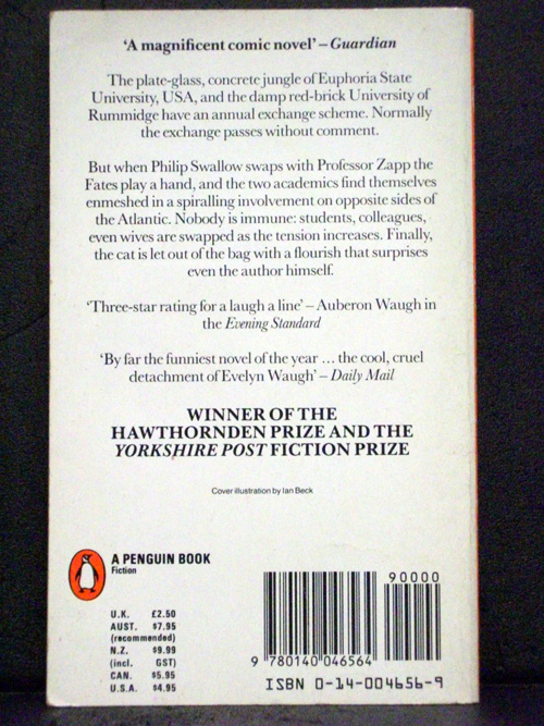 When Phillip Swallow and Professor Morris Zapp participate in their universities' Anglo-American exchange scheme the Fates play a hand and each academic finds himself enmeshed in the life of his counterpart on the opposite side of the Atlantic. Nobody is immune to the exchange: students colleagues even wives are swapped as events spiral out of control. And soon both sun-drenched Euphoric State University and rain-kissed University of Rummidge are a hotbed of intrigue lawlessness and broken vows. 'Not since Lucky Jim has such a funny book about academic life come my way' Sunday Times