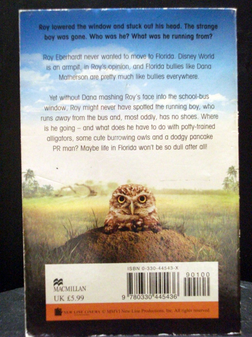 Roy Eberhardt is recently and unhappily arrived in Florida. 'Disney World is an armpit compared to Montana' he announces. Roy's family moves a lot so he's used to the new-kid drill - and to bullies like Dana Matherson. And anyway it's because of Dana that Roy gets to see the mysterious running boy - who runs away from the school bus and who has no books no backpack and most oddly no shoes. Sensing a mystery Roy starts to trail the runner - a chase that will introduce him to many weird Floridian creatures: potty-trained alligators some cute burrowing owls a fake-fart champion a sinister pancake PR man and some snakes with mysteriously sparkly tails. Suddenly life in Florida is looking up!