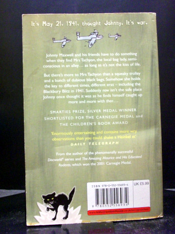 This book is in reasonable condition and complete but it does have a few indentations at the beginning please bear this in mind before purchasing >>Mrs Tachyon the bag-lady is not the sort of person you'd normallychoose to hang out with. But when Johnny Maxwell and his friends find her semi-conscious in an alley they have to do as long it it's not the kiss of life. The more time Johnny spends with her the more he finds that Mrs Tachyon isn't the ranting old nutter everyone thinks she is. She seems to hold the key to different times different eras -including the Blackbury Blitz in 1941. Suddenly now isn't thesafe place Johnny once though it was as he finds himself boundup more and more with then. And as time shifts beneath himand the shopping mall and TV arials melt into air-raid sirens andration books Johnny wonders just how much changing the past canreally change the future...