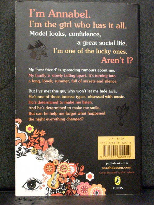 Just Listen is a captivating young adult novel about learning to forgive and forget from New York Times Number One bestseller Sarah Dessen author of The Truth About Forever and Lock and Key Sarah Dessen. I'm Annabel. I'm the girl who has it all. Model looks confidence. A great social life. I'm one of the lucky ones. Aren't I? My 'best friend' is spreading rumours about me. My family is slowly falling apart. It's turning into a long lonely summer full of secrets and silence. But I've met this guy who won't let me hide away. He's one of those intense types obsessed with music. He's determined to make me listen. And he's determined to make me smile. But can he help me forget what happened the night everything changed? Sarah Dessen is the author of stunning teen novels: The Truth About Forever Along for the Ride Lock and Key That Summer and What Happened to Goodbye. She lives in the countryside in North Carolina with her daughter husband some lizards and two very spoilt dogs - read her once and fall in love.