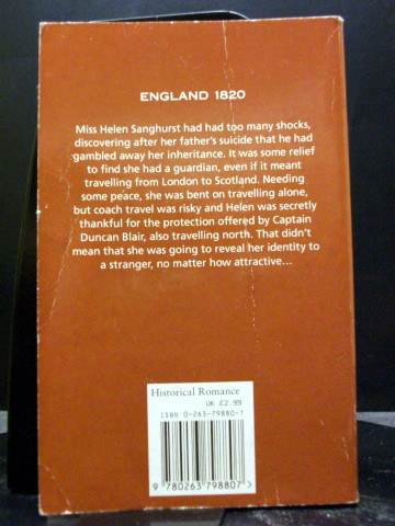 Miss Helen Sanghurst was shocked when she discovered after her father's suicide that he had gambled away her inheritance. It was some relief to find that she had a guardian even if it meant travelling from London to some peace she was bent on travelling alone but coach travel was risky and she was secretly thankful for the protection offered by Captain Duncan Blair also travelling north. That didn't mean that she was going to reveal her identity to a stranger no matter how attractive he was...