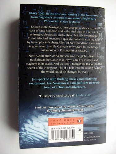 Years ago an ancient Phoenician statue known as the Navigator was stolen from the Baghdad Museum and there are men who would do anything to get their hands on it. Their first victim is a crooked antiquities dealer murdered in cold blood. Their second very nearly is a UN investigator who were it not for the timely assistance of Austin and Zavala would now be at the bottom of a watery grave. What's so special about this statue? Austin wonders. The search for answers will take the NUMA team on an astonishing odyssey through time and space one that encompasses no less than the lost treasures of King Solomon a mysterious packet of documents personally encoded by Thomas Jefferson and a top secret scientific project that could change the world forever. And that's before the surprises really begin . . . Rich with all the hair-raising action and endless invention that have become Cussler's hallmarks The Navigator is Clive's best yet.