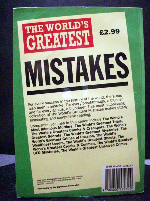 Part of a series of books which examines real-life stories that have made newspaper headlines around the world this looks at famous blunders. Other titles available include "The World's Greatest Secrets" and "The World's Greatest Crimes of Passion".