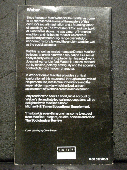 Book Details Author = Donald Gunn Macrae Title = Weber - Fontana Modern Masters language = English Format = Paperback Date = 1982 Condition = Acceptable The Publisher = Fontana Genre = Literary Works